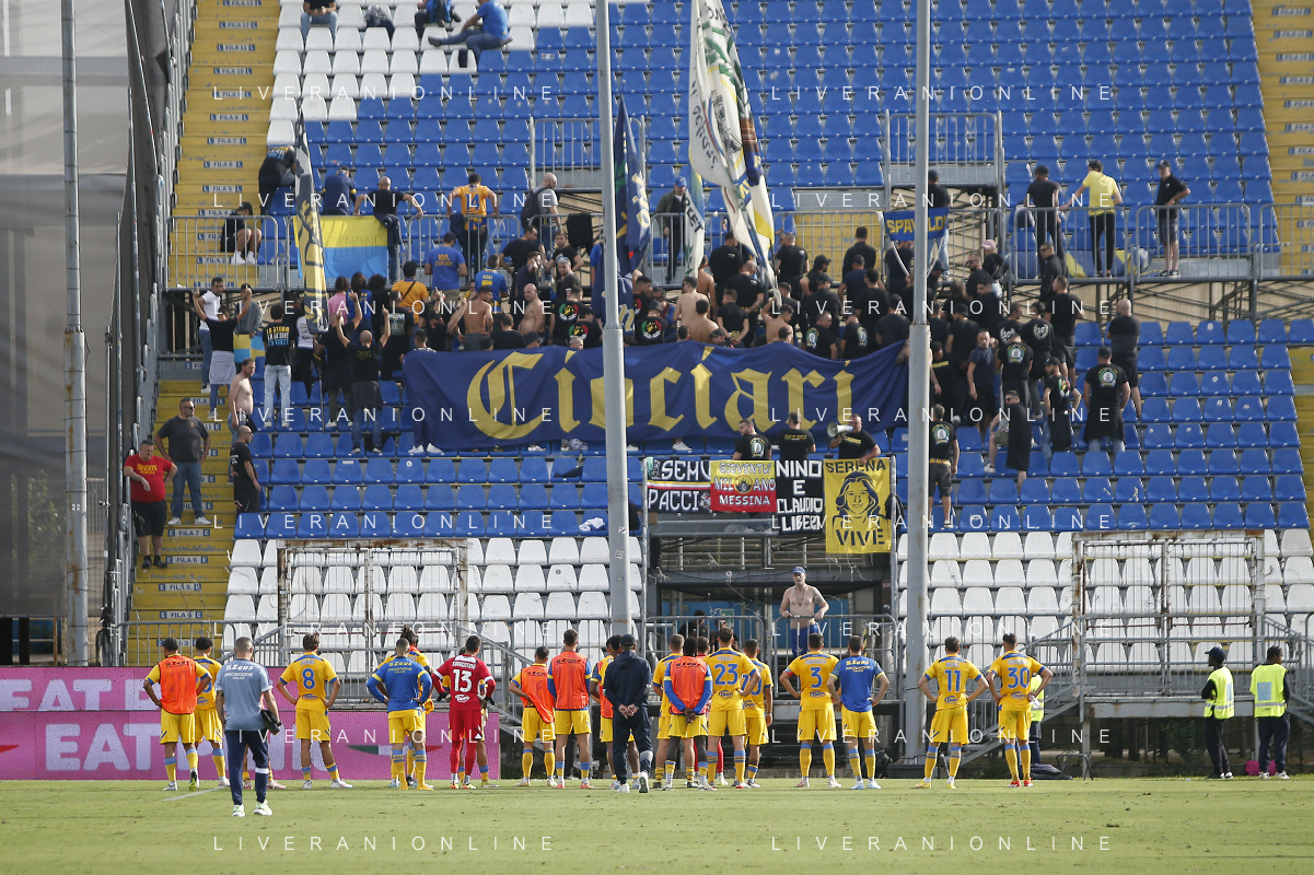 Frosinone players under their fans afther the match during Brescia Calcio vs Frosinone Calcio, 5° Serie B BKT 2024-25 game at Mario Rigamonti stadium in Brescia (BS), Italy, on September 14, 2024. (Photo by Davide Casentini) ag aldo liverai sas