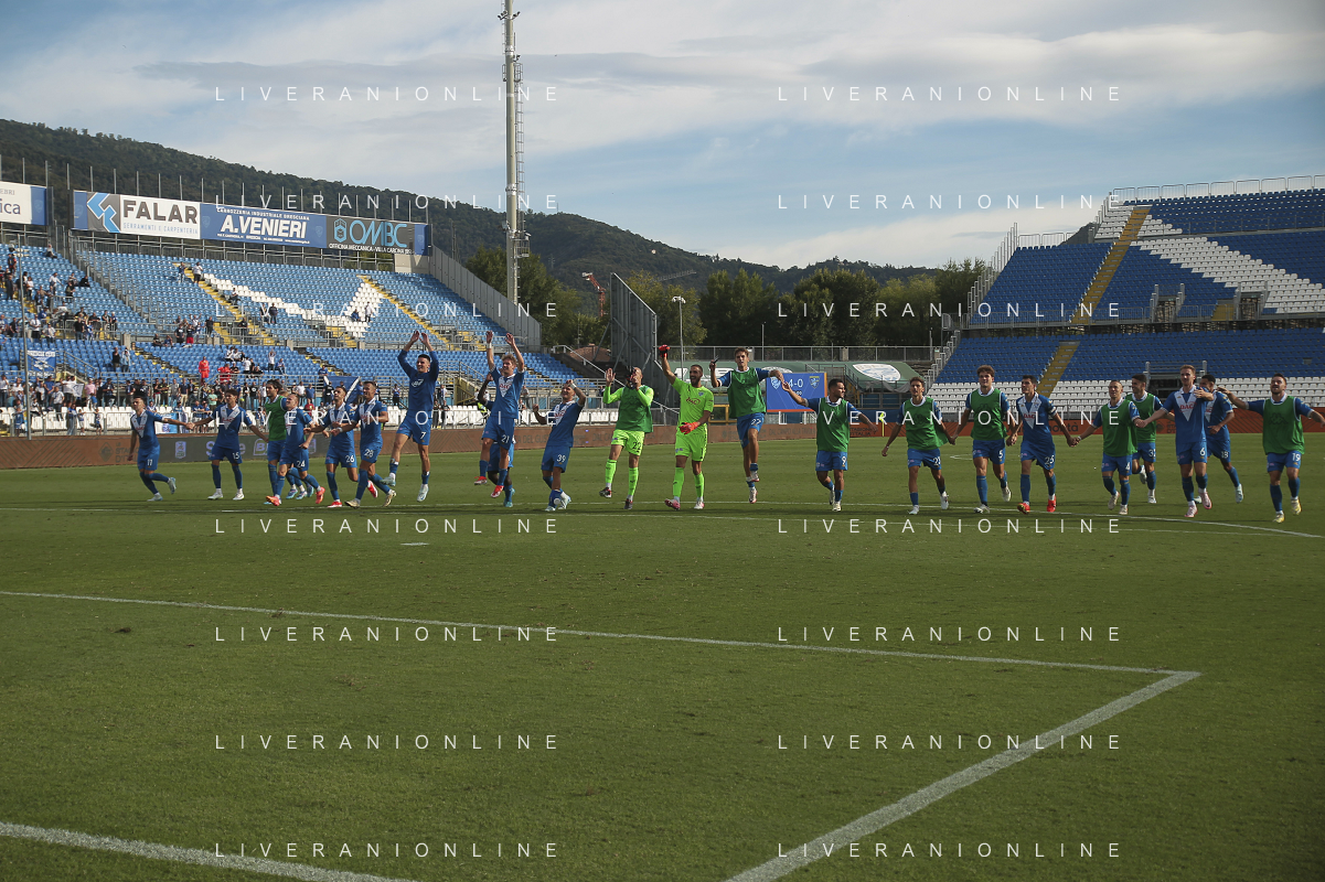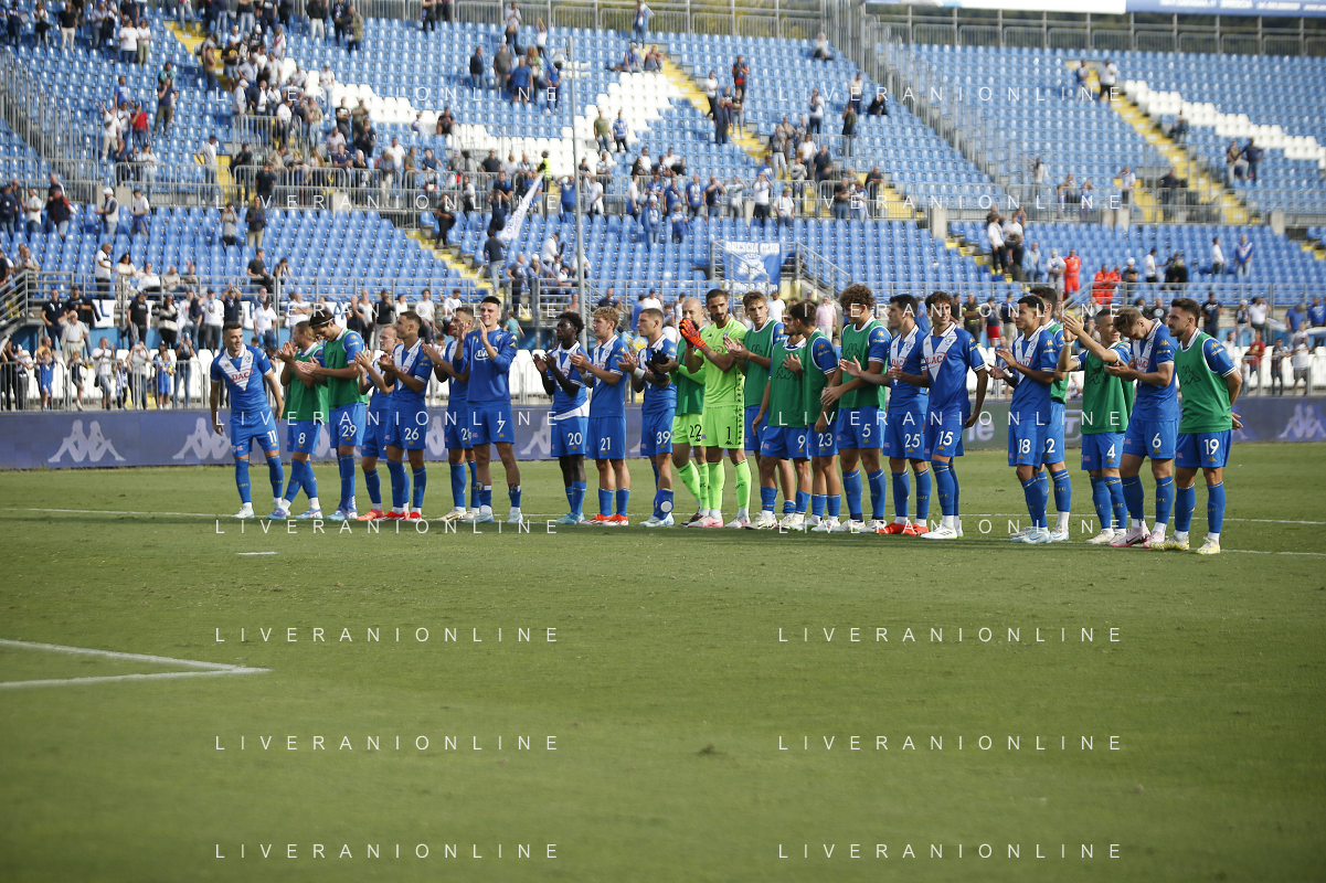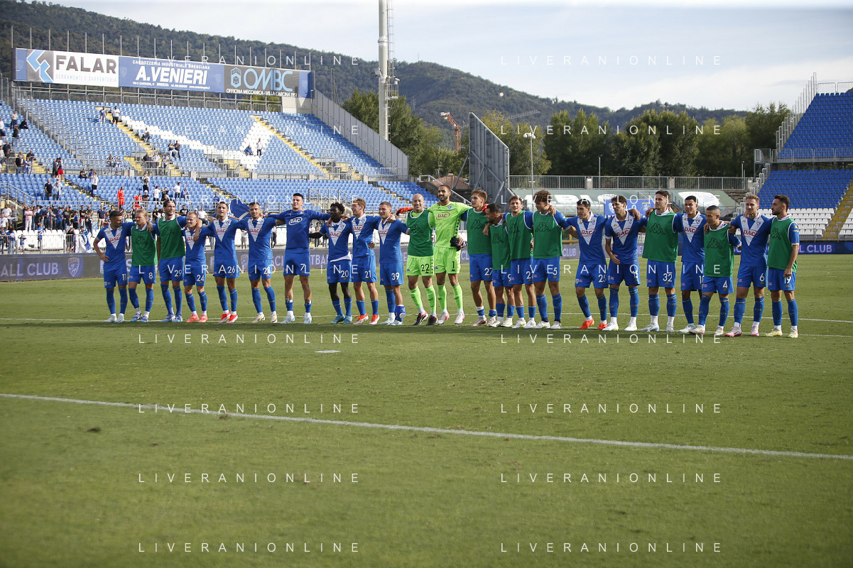 Brescia players celebrate the victory at the end of Brescia Calcio vs Frosinone Calcio, 5° Serie B BKT 2024-25 game at Mario Rigamonti stadium in Brescia (BS), Italy, on September 14, 2024. (Photo by Davide Casentini) ag aldo liverai sas