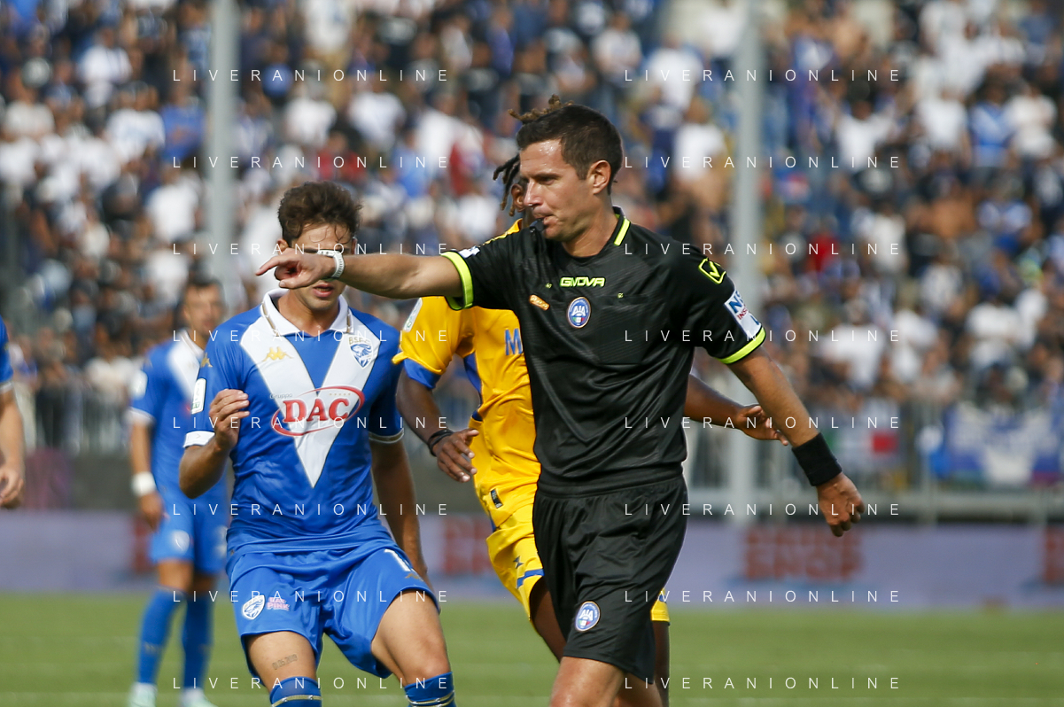 the Referee Davide Ghersini during Brescia Calcio vs Frosinone Calcio, 5° Serie B BKT 2024-25 game at Mario Rigamonti stadium in Brescia (BS), Italy, on September 14, 2024. (Photo by Davide Casentini)/AGENZIA ALDO LIVERANI SAS