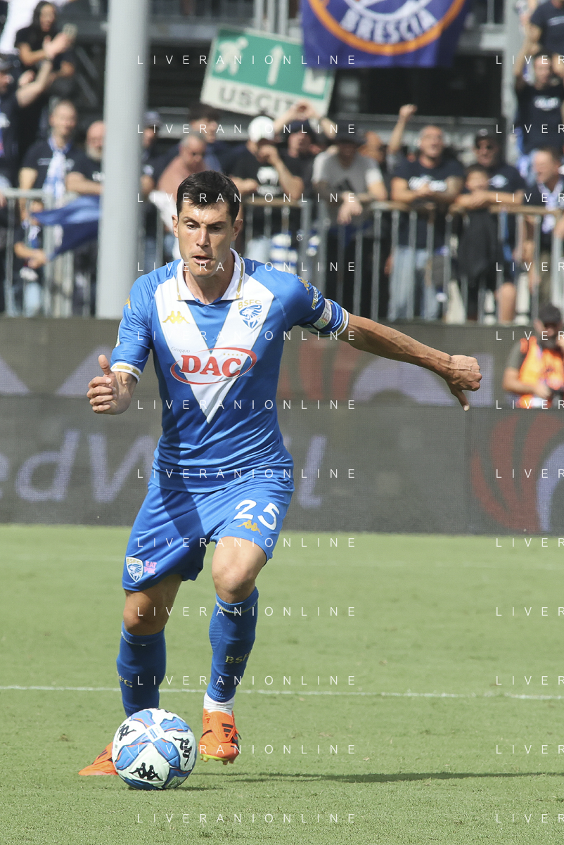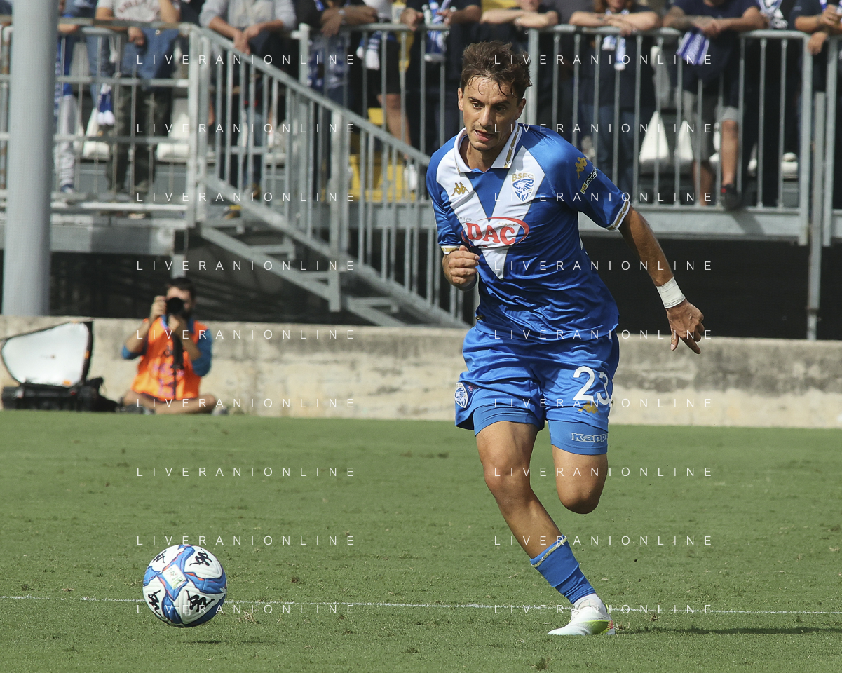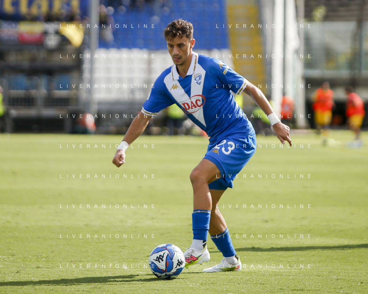 Dimitri Bisoli of Brescia Calcio FC play the ball during Brescia Calcio vs Frosinone Calcio, 5° Serie B BKT 2024-25 game at Mario Rigamonti stadium in Brescia (BS), Italy, on September 14, 2024. (Photo by Davide Casentini) ag aldo liverai sas