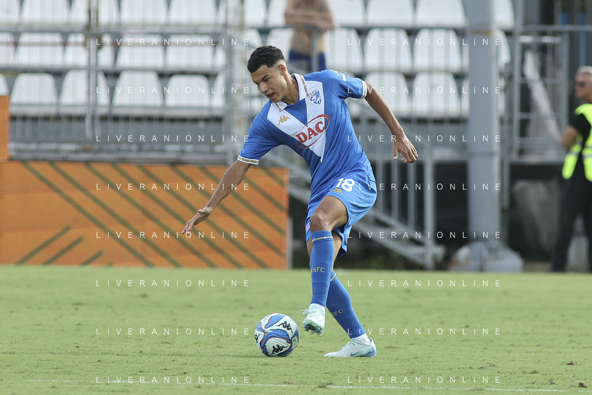 Alexander Jallow of Brescia Calcio FC play the ball during Brescia Calcio vs Frosinone Calcio, 5° Serie B BKT 2024-25 game at Mario Rigamonti stadium in Brescia (BS), Italy, on September 14, 2024. (Photo by Davide Casentini) ag aldo liverai sas