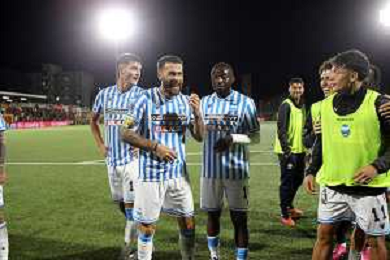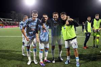 SESTRI LEVANTE - SPAL CAMPIONATO CALCIO SERIE C 14.09.2024 NELLA FOTO ESULTANZA DEI GIOCATORI DELLA SPAL A FINE GARA /AGENZIA ALDO LIVERANI SAS