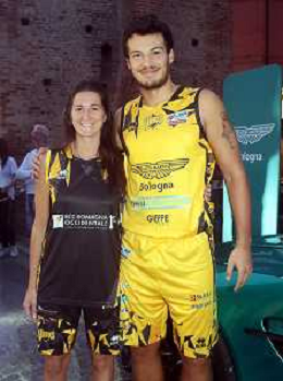 IMOLA 15 09 2024 VIRTUS IMOLA BASKET SERIE B1 PRESENTAZIONE DELLA SQUADRA ELIO'S CAFFE NELLA FOTO SQUADRA FEMMINILE DELLA VIRTUS IMOLA GIULIA E CAPITANO DELLA SQUADRA MASCHILE VIRTUS IMOLA FRANCESCO MAGAGNOLI ©SANNA/AGENZIA ALDO LIVERANI SAS