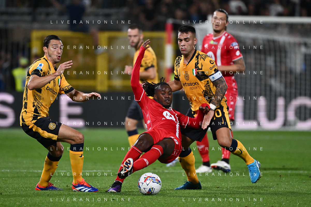 Monza vs Inter nella foto Warren Bondo (Monza) tra Matteo Darmian (Inter) e Lautaro Martinez (Inter) Monza 15-09-2024 U-Power Stadium Campionato Serie A Enilive - 4a giornata foto Roberto Garavaglia/Agenzia Aldo Liverani sas/AGENZIA ALDO LIVERANI SAS