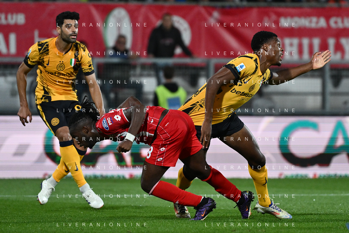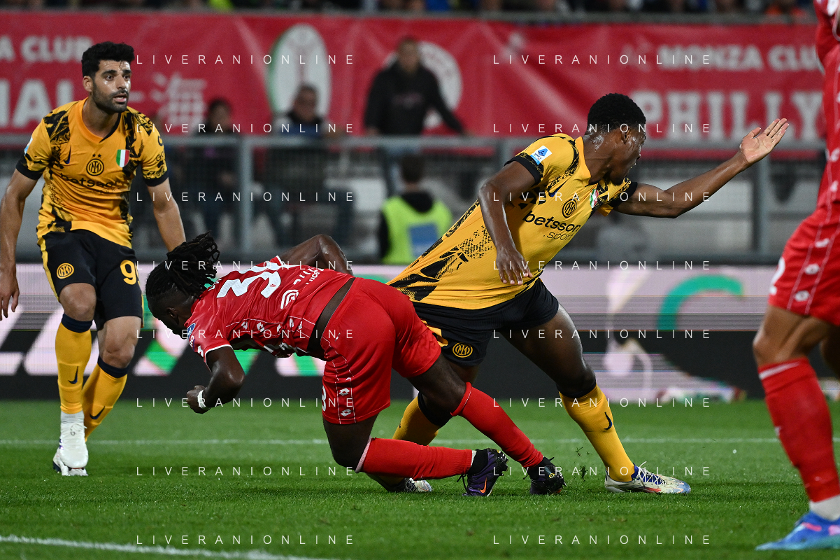Monza vs Inter nella foto nel recupero il contatto in area tra Warren Bondo (Monza) e Denzel Dumfries (Inter) giudicato regolare da arbitro e VAR Monza 15-09-2024 U-Power Stadium Campionato Serie A Enilive - 4a giornata foto Roberto Garavaglia/Agenzia Aldo Liverani sas/AGENZIA ALDO LIVERANI SAS