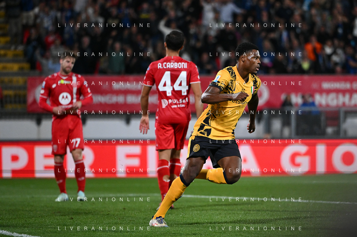 Monza vs Inter nella foto Denzel Dumfries (Inter) esulta dopo il goal Monza 15-09-2024 Stadio U-Power stadium in Monza Campionato Serie A TIM - 4a giornata foto Tiziano Ballabio/Agenzia Aldo Liverani sas / AGENZIA ALDO LIVERANI SAS/AGENZIA ALDO LIVERANI SAS
