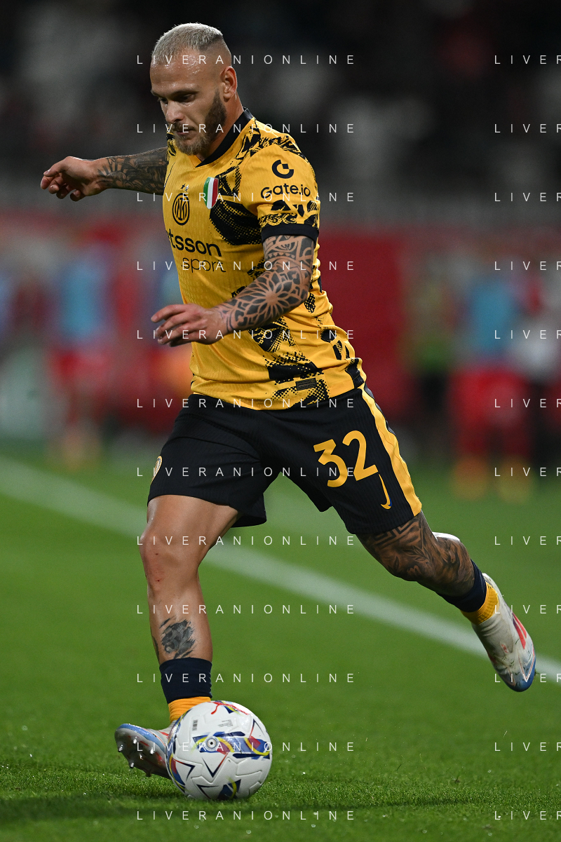 Monza vs Inter nella foto Federico Dimarco in riscaldamento (Inter) Monza 15-09-2024 Stadio U-Power stadium in Monza Campionato Serie A TIM - 4a giornata foto Tiziano Ballabio/Agenzia Aldo Liverani sas / AGENZIA ALDO LIVERANI SAS/AGENZIA ALDO LIVERANI SAS