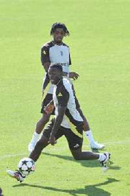 TVMV-Torino 16.09.2024 Continassa © Manuela Viganti/Agenzia Aldo Liverani Allenamento Juventus Rifinitura partita Champions League Juventus Psv Nella foto: timothy weah e samuel mbangula ©Viganti/AGENZIA ALDO LIVERANI SAS