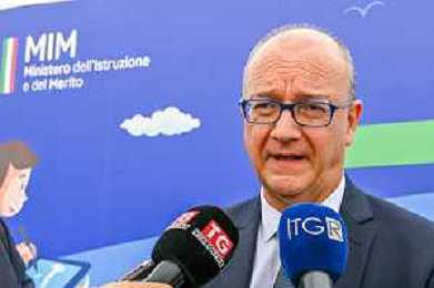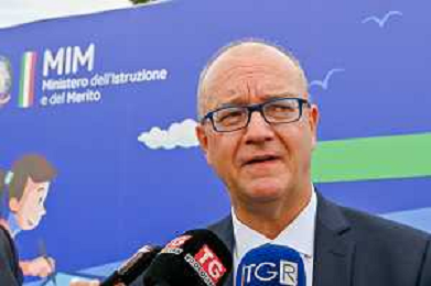 16-9-2024. Il presidente della Repubblica Italiana Sergio Mattarella e il ministro dell'istruzione Giuseppe Valditara, presenziano la 24esima edizione di tutti a scuola. Si terrà innaugurazione anno scolastico 2024/2025, presso Convitto Nazionale "Vittorio Emanuele II", in via Pintus a Cagliari. Foto Salvatore Moi/Agenzia Aldo Liverani s.as. Nella foto: Giuseppe Valditara ministro istruzione Italia