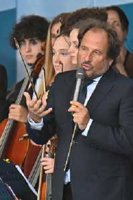 16-9-2024. Il presidente della Repubblica Italiana Sergio Mattarella e il ministro dell'istruzione Giuseppe Valditara, presenziano la 24esima edizione di tutti a scuola. Si terrà innaugurazione anno scolastico 2024/2025, presso Convitto Nazionale "Vittorio Emanuele II", in via Pintus a Cagliari. Foto Salvatore Moi/Agenzia Aldo Liverani s.as. Nella foto: Maestro di musica orchestra De Amicis