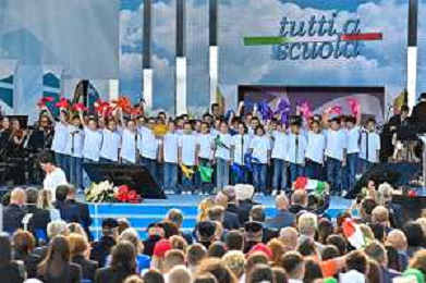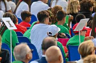 16-9-2024. Il presidente della Repubblica Italiana Sergio Mattarella e il ministro dell'istruzione Giuseppe Valditara, presenziano la 24esima edizione di tutti a scuola. Si terrà innaugurazione anno scolastico 2024/2025, presso Convitto Nazionale "Vittorio Emanuele II", in via Pintus a Cagliari. Foto Salvatore Moi/Agenzia Aldo Liverani s.as. Nella foto: alunni