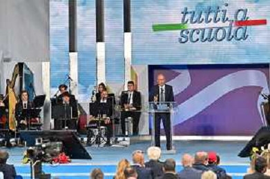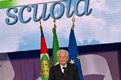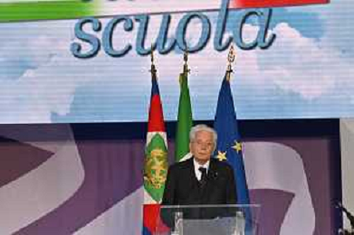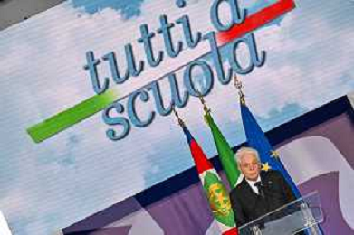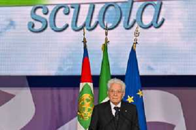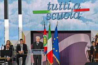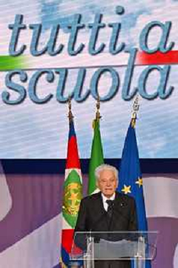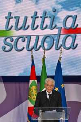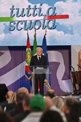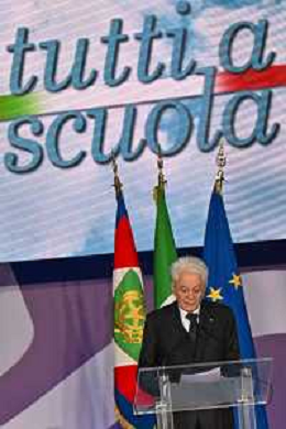 16-9-2024. Il presidente della Repubblica Italiana Sergio Mattarella e il ministro dell'istruzione Giuseppe Valditara, presenziano la 24esima edizione di tutti a scuola. Si terrà innaugurazione anno scolastico 2024/2025, presso Convitto Nazionale "Vittorio Emanuele II", in via Pintus a Cagliari. Foto Salvatore Moi/Agenzia Aldo Liverani s.as. Nella foto: Sergio Mattarella Presidente Repubblica Italiana