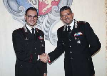 IMOLA 16 09 2024 MAGGIORE DEI CARABINIERI ANDREA OXILIA SALUTA LA CITTA' PER UN NUOVO INCARICO LAVORATIVO NELLA FOTO NUOVO COMMANDANTE DELLA STAZIONE DI IMOLA CAPITANO DOMENICO LAVIGNA E MAGGIORE ANDREA OXILIA COMMANDANTE USCENTE FOTO GIANNI SANNA-AG ALD LIVERANI SAS