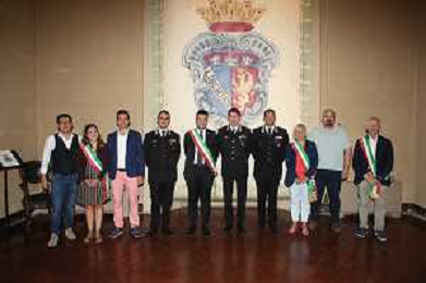 IMOLA 16 09 2024 MAGGIORE DEI CARABINIERI ANDREA OXILIA SALUTA LA CITTA' PER UN NUOVO INCARICO LAVORATIVO NELLA FOTO DA SINISTRA NUOVO COMMANDANTE DELLA STAZIONE DI IMOLA CAPITANO DOMENICO LAVIGNA,SINDACO MARCO PANIERI,GENERALE RODOLFO SANTOVITO E MAGGIORE ANDREA OXILIA CON I SINDACI DEL CIRCONDARIO IMOLESE FOTO GIANNI SANNA-AG ALD LIVERANI SAS