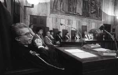 NEG-1989 MILANO PROCESSO SERGIO RAMELLI UCCISO DA UN GRUPPO DI MILITANTI DELLA SINISTRA EXTRAPARLAMENTARE NELLA FOTO ALCUNI MOMENTI DEL PROCESSO A MILANO AG ALDO LIVERANI SAS