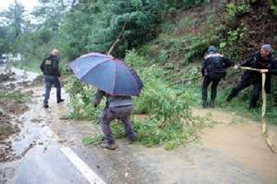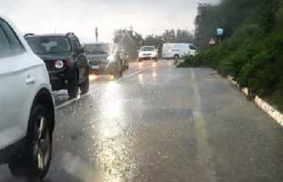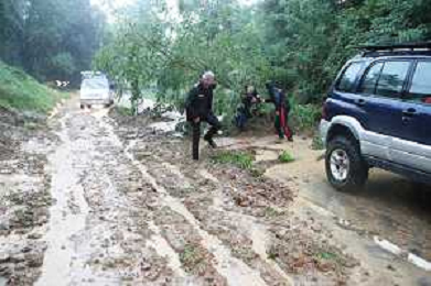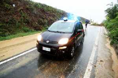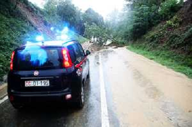 FONTANELICE 18 09 2024 PIOGGIA FRANE MALTEMPO NELLA FOTO VIA MONTANRA SOTTO LA PIOGGIA BLOCCATA DA UNA FRANA ALTEZZA FONTANELICE VERSO CASTEL DEL RIO SUL POSTO CARABINIERI DI FONTANELICE CON AIUTO DEI CITTADINI HANNO SPOSTATO UN ALBERO DALLA STRADA FOTO GIANNI SANNA-AG ALDO LIVERANI SAS