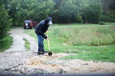 FONTANELICE 18 09 2024 PIOGGIA FRANE MALTEMPO NELLA FOTO PULIZA DEI FOSSI SOTTO LA PIOGGIA DA PARTE DI UN CITTADINO FOTO GIANNI SANNA-AG ALDO LIVERANI SAS