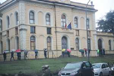 FONTANELICE 18 09 2024 PIOGGIA FRANE MALTEMPO NELLA FOTO GENITORI SOTTO LA PIOGGIA ASPETTANO I SUOI FIGLI PER LA USCITA DALLA SCUOLA ELEMENTARE DI FONTANELICE FOTO GIANNI SANNA-AG ALDO LIVERANI SAS
