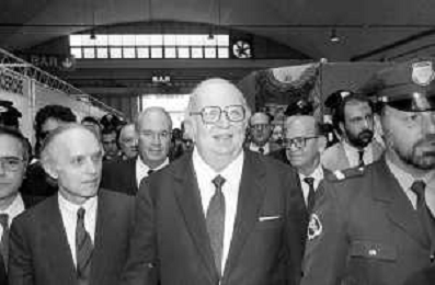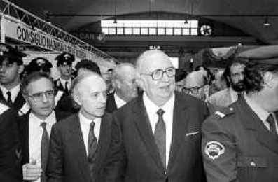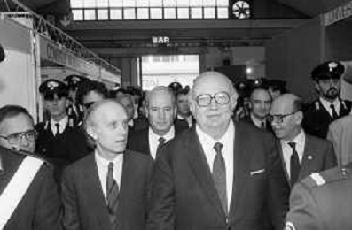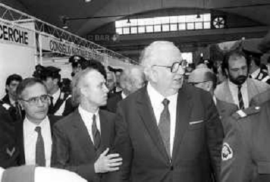 Neg- RETROSPETTIVA GIOVANNI SPADOLINI POLITICO NELLA FOTO GIOVANNI SPADOLINI ALLA FIERA DI MILANO NELL’ANNO 1988 AG ALDO LIVERANI SAS