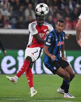 TVRG Atalanta vs Arsenal nella foto Bukayo Saka (Arsenal) e Isak Hien (Atalanta) Bergamo 19-09-2024 Gewiss Stadium UEFA Champions League fase a girone unico - 1a giornata foto Roberto Garavaglia/Agenzia Aldo Liverani sas