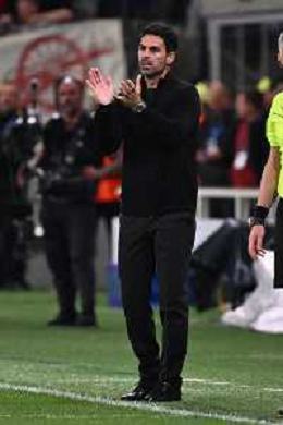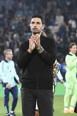 Mikel Arteta Head Coach of Arsenal FC applaud the fans following the final whistle during Atalanta BC vs Arsenal FC, 1° round of Chanpions League 2024-25, game at Gewiss stadium in Bergamo (BG), Italy, on September 19, 2024. (Photo by Davide Casentini) ag aldo liverani sas