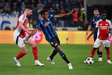 TVRG Atalanta vs Arsenal nella foto Juan Cuadrado (Atalanta) e sulla SX Declan Rice (Arsenal) Bergamo 19-09-2024 Gewiss Stadium UEFA Champions League fase a girone unico - 1a giornata foto Roberto Garavaglia/Agenzia Aldo Liverani sas