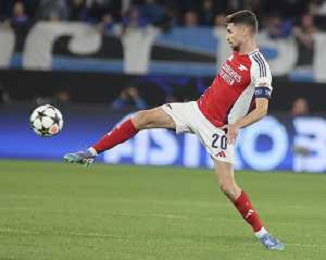 Thomas Partey of Arsenal FC play the ball during Atalanta BC vs Arsenal FC, 1° round of Chanpions League 2024-25, game at Gewiss stadium in Bergamo (BG), Italy, on September 19, 2024. (Photo by Davide Casentini) ag aldo liverani sas