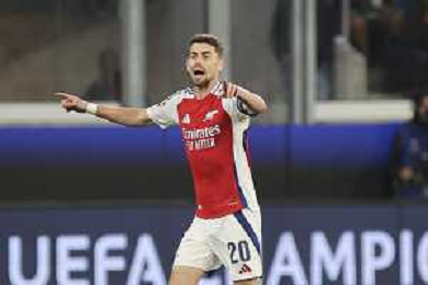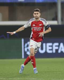 Jorginho of Arsenal FC play the ball during Atalanta BC vs Arsenal FC, 1° round of Chanpions League 2024-25, game at Gewiss stadium in Bergamo (BG), Italy, on September 19, 2024. (Photo by Davide Casentini) ag aldo liverani sas