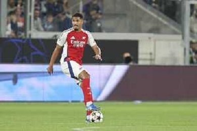 Gabriel Magalhaes of Arsenal FC play the ball during Atalanta BC vs Arsenal FC, 1° round of Chanpions League 2024-25, game at Gewiss stadium in Bergamo (BG), Italy, on September 19, 2024. (Photo by Davide Casentini) ag aldo liverani sas