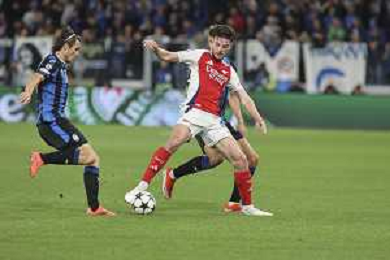 Declan Rice of Arsenal FC competes for the ball during Atalanta BC vs Arsenal FC, 1° round of Chanpions League 2024-25, game at Gewiss stadium in Bergamo (BG), Italy, on September 19, 2024. (Photo by Davide Casentini) ag aldo liverani sas