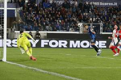 Mateo Retegui of Atalanta BC heads the ball during Atalanta BC vs Arsenal FC, 1° round of Chanpions League 2024-25, game at Gewiss stadium in Bergamo (BG), Italy, on September 19, 2024. (Photo by Davide Casentini) ag aldo liverani sas
