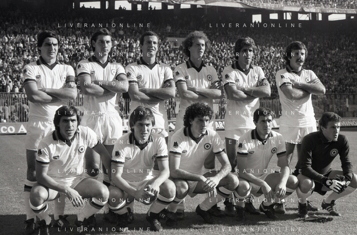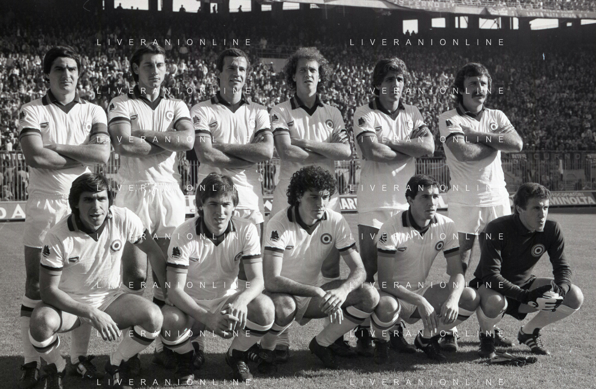 NEG - FORMAZIONE ROMA CALCIO ANNO 1980-1981 NELLA FOTO LA FORMAZIONE DELLA ROMA CALCIO ANNO 1980-1981 DA SIN IN PIEDI AGOSTINO DI BARTOLOMEI-VINCENZO ROMANO-LUCIANO SPINOSI-PAULO ROBERTO FALCAO-MAURIZIO TURONE-ROBERTO PRUZZO SED DA SIN BRUNO CONTI-CARLO ANCELOTTI-ROBERTO SCARNECCHIA- DOMENICO MAGGIORA-FRANCO TANCREDI AG ALDO LIVERANI SAS