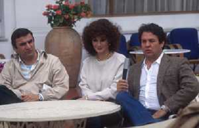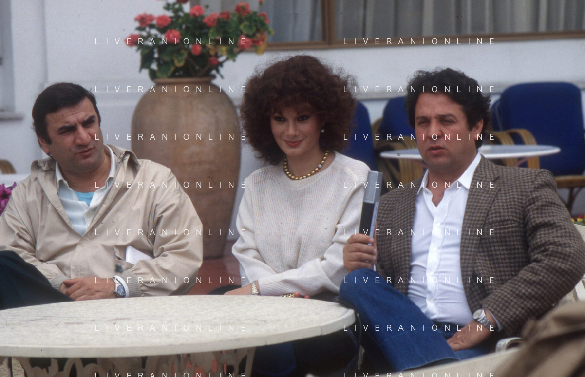 DIAP-RETROSPETTIVA ALDO MACCIONE ATTORE NELLA FOTO EDWIGE FENECH CON RENATO POZZETTO E ALDO MACCIONE AL FESTIVAL DI CANNES NELL'ANNO 1980 AG ALDO LIVERANI SAS