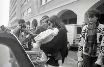 DIAP-RETROSPETTIVA STEFANO CASIRAGHI REALI DI MONACO NELLA FOTO STEFANO CASIRAGHI CON CAROLINA DI MONACO A MONTECARLO PER LE GARE DI OFF-SHORE NELL'ANNO 1986 AG ALDO LIVERANI SAS