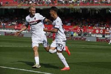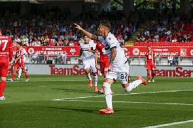 Kacper Urbanski of Bologna FC scores a goal during AC Monza vs Bologna BFC, 5° Serie A Enilive 2024-25 game at U-Power stadium in Monza (MB), Italy, on September 22, 2024. (Photo by Davide Casentini)/AGENZIA ALDO LIVERANI SAS