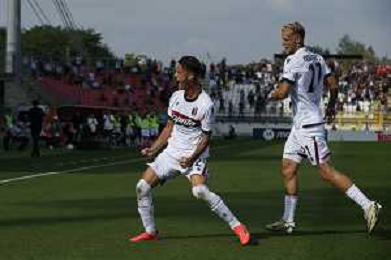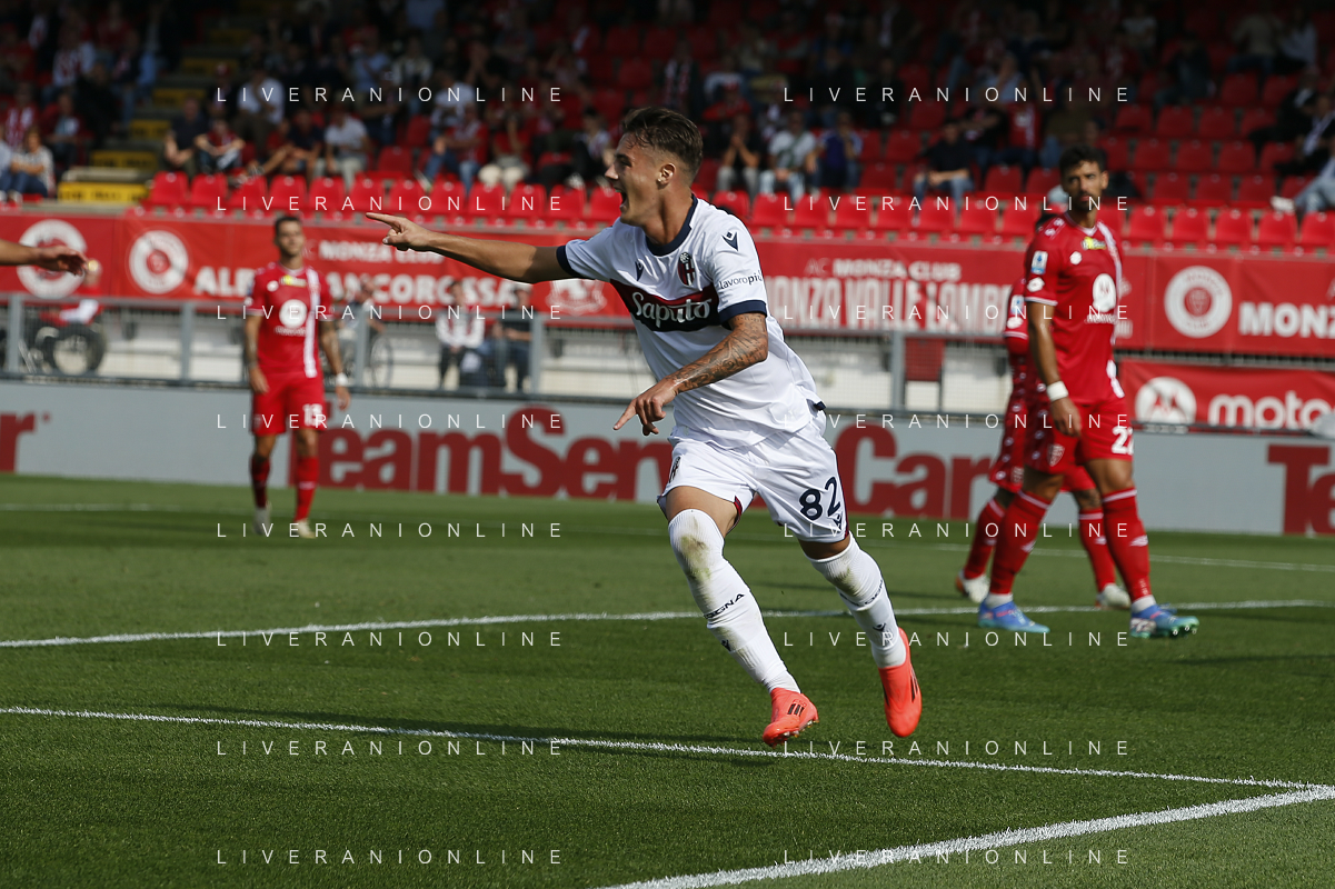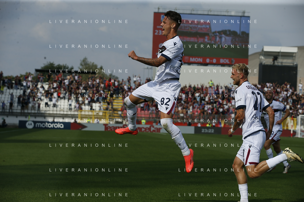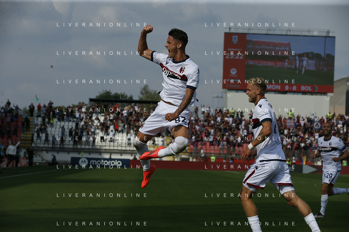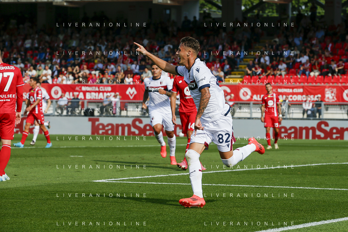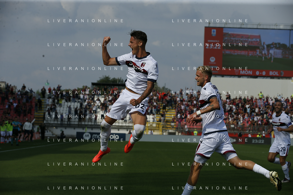 Kacper Urbanski of Bologna FC celebrates after scoring during AC Monza vs Bologna BFC, 5° Serie A Enilive 2024-25 game at U-Power stadium in Monza (MB), Italy, on September 22, 2024. (Photo by Davide Casentini)/AGENZIA ALDO LIVERANI SAS