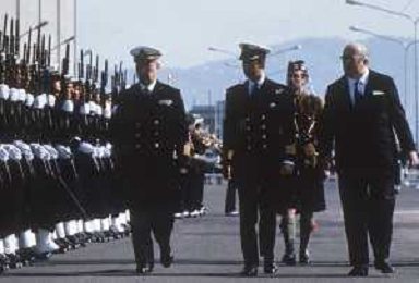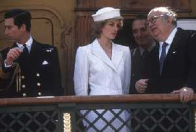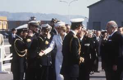 DIAP- RETROSPETTIVA GIOVANNI SPADOLINI POLITICO NELLA FOTO GIOVANNI SPADOLINI NELL'ANNO 1985 A VENEZIA CON I REALI INGLESI RE CARLO E LADY DIANA SULLA NAVE AMERIGO VESPUCCI FOTO MASSIMO BIANCHI-AG ALDO LIVERANI SAS