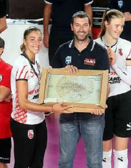 IMOLA 22 09 2024 1 TROFEO FRANCESCO SPADONI SERIE A PALLAVOLO NELLA FOTO NOEMI SIGNORILE CUNEO VOLLEY RICEVE IL PREMIO DA FIGLIO DI FRANCESCO SPADONI FOTO GIANNI SANNA-AG ALDO LIVERANI SAS