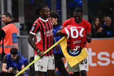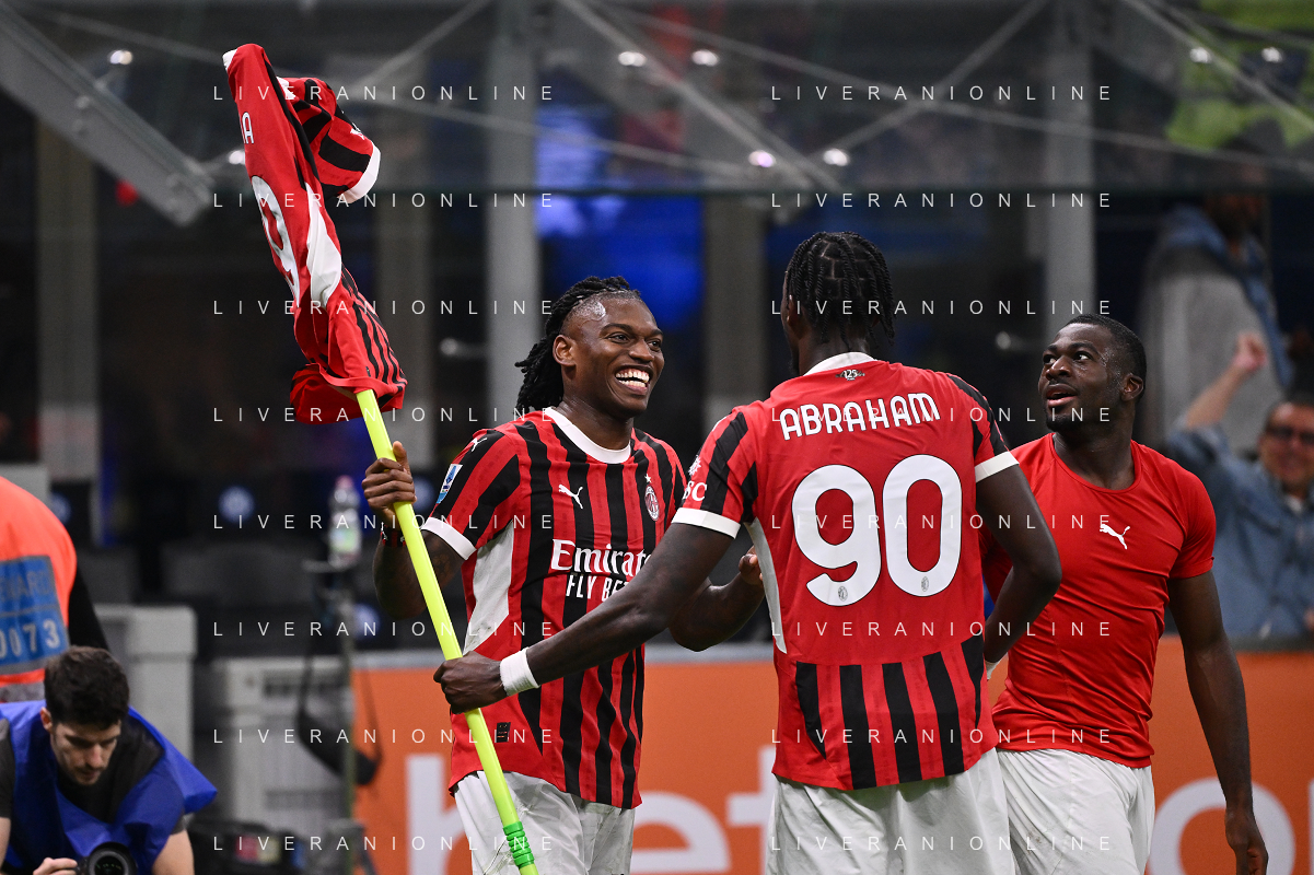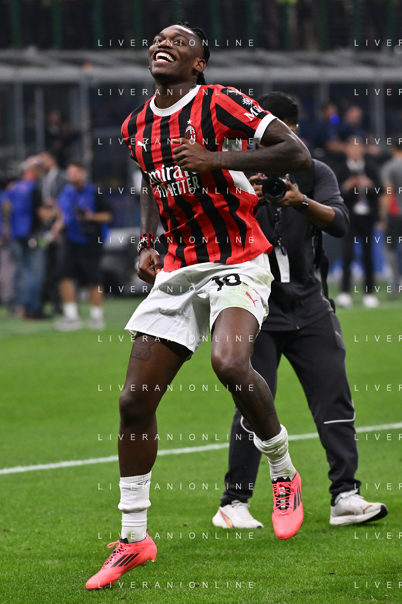 Inter vs Milan nella foto Rafael Leao (Milan) esultanza a fine partita Milano 22-09-2024 Stadio Giuseppe Meazza - San Siro Campionato Serie A Enilive - 5a giornata foto Roberto Garavaglia/Agenzia Aldo Liverani sas/AGENZIA ALDO LIVERANI SAS