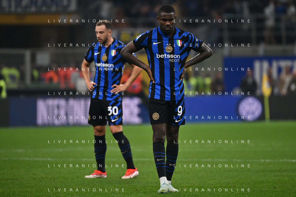 Inter vs Milan nella foto delusione Carlos Augusto (Inter) e Marcus Thuram (Inter) Milano 22-09-2024 Stadio Giuseppe Meazza - San Siro Campionato Serie A Enilive - 5a giornata foto Roberto Garavaglia/Agenzia Aldo Liverani sas/AGENZIA ALDO LIVERANI SAS