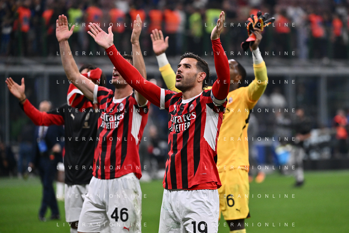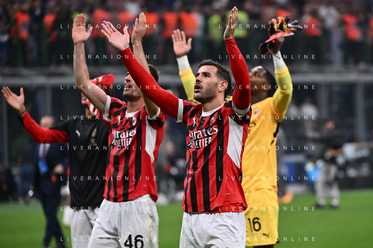 Inter vs Milan nella foto Theo Hernandez (Milan) esultanza a fine partita Milano 22-09-2024 Stadio Giuseppe Meazza - San Siro Campionato Serie A Enilive - 5a giornata foto Roberto Garavaglia/Agenzia Aldo Liverani sas/AGENZIA ALDO LIVERANI SAS