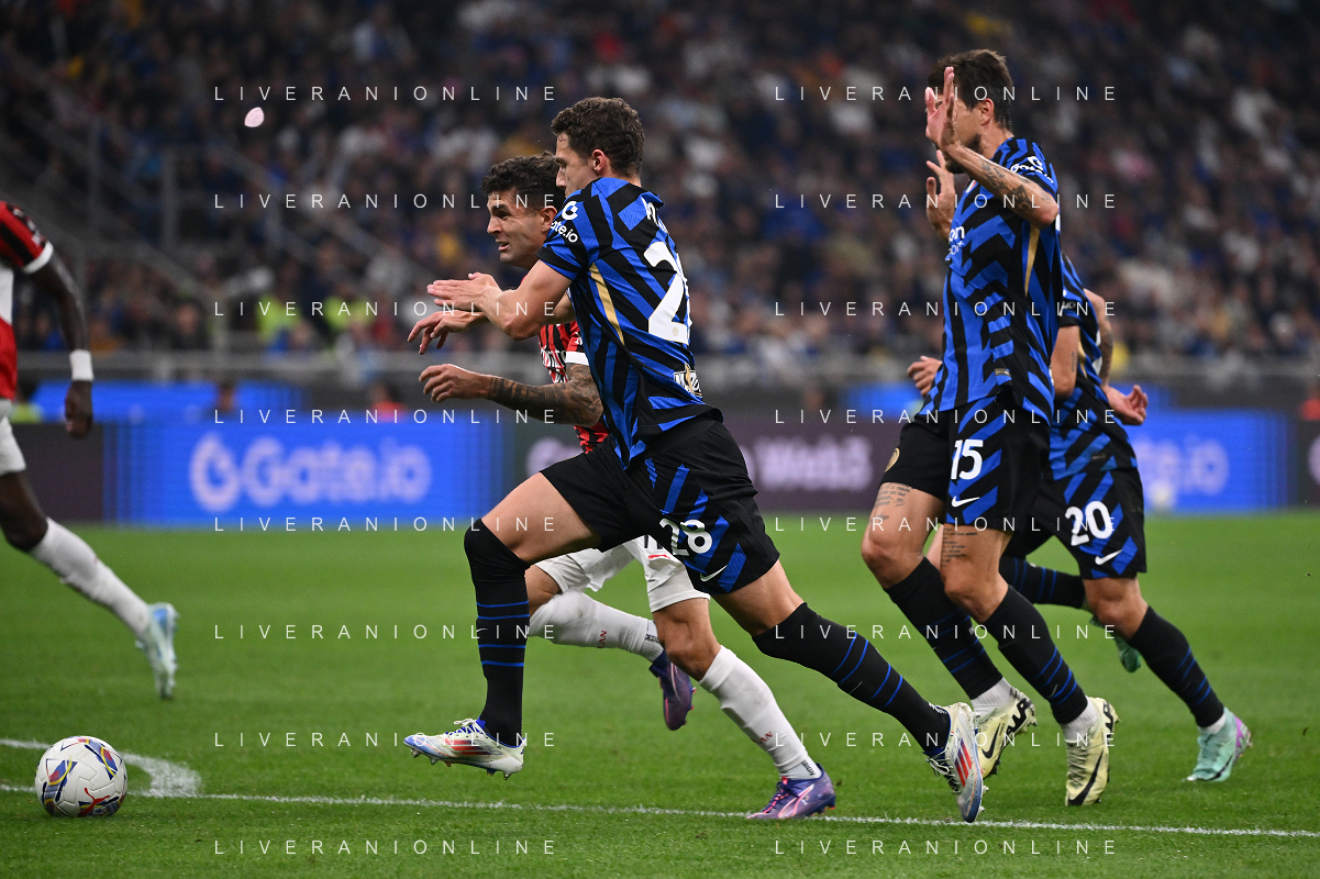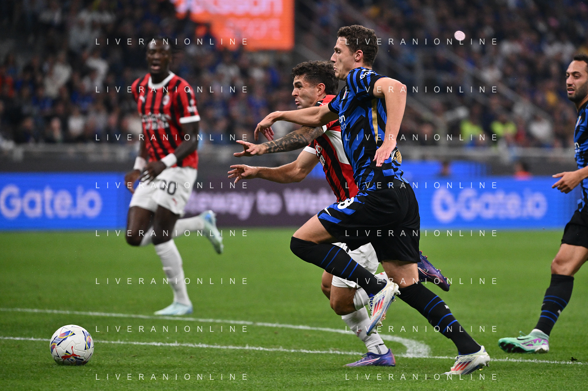 Inter vs Milan nella foto Christian Mate Pulisic (Milan) suprea di forza Benjamin Pavard (Inter) e segna il gol dell'1 a 0 Milano 22-09-2024 Stadio Giuseppe Meazza - San Siro Campionato Serie A Enilive - 5a giornata foto Roberto Garavaglia/Agenzia Aldo Liverani sas/AGENZIA ALDO LIVERANI SAS