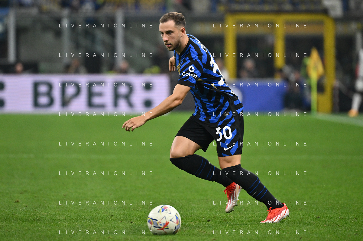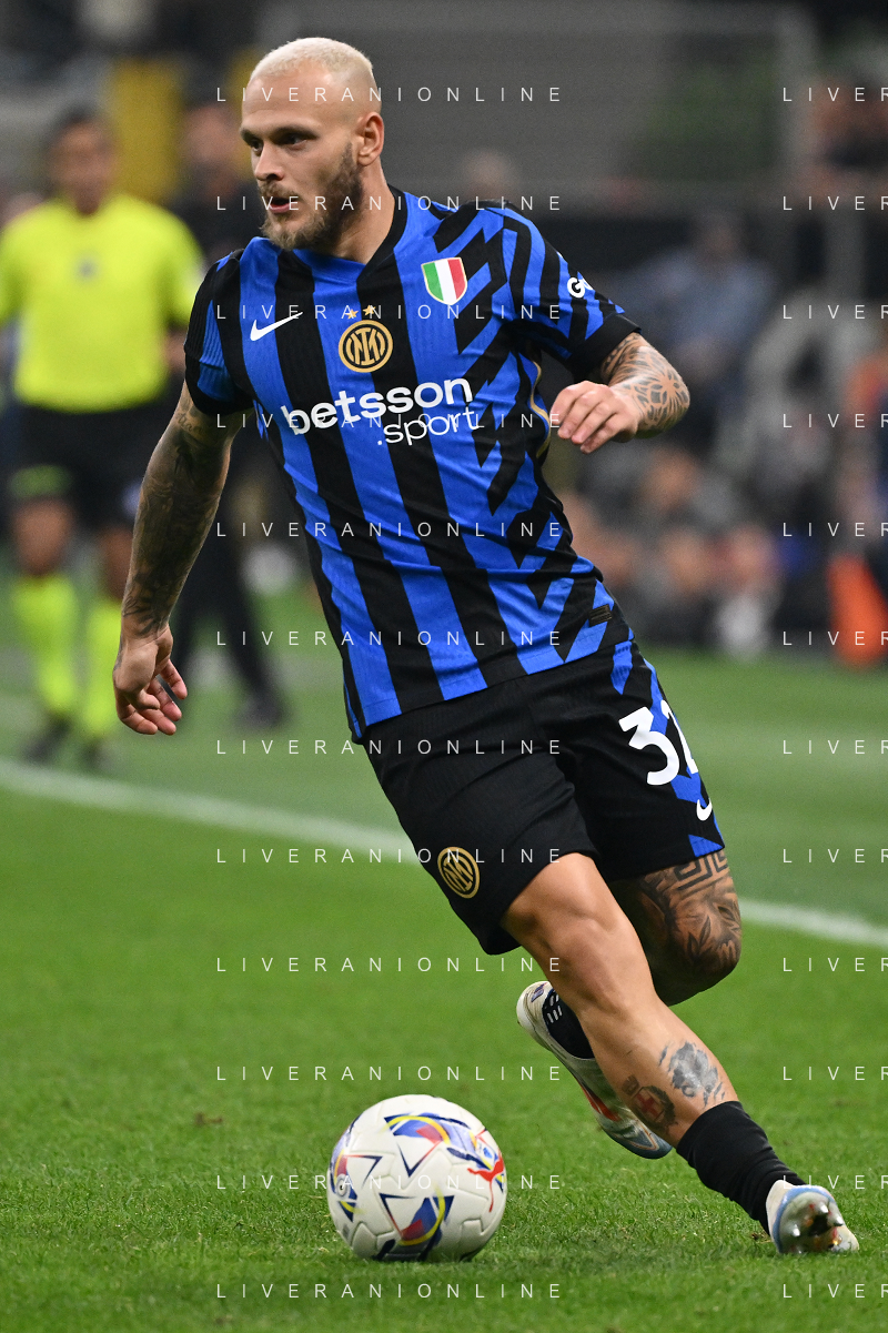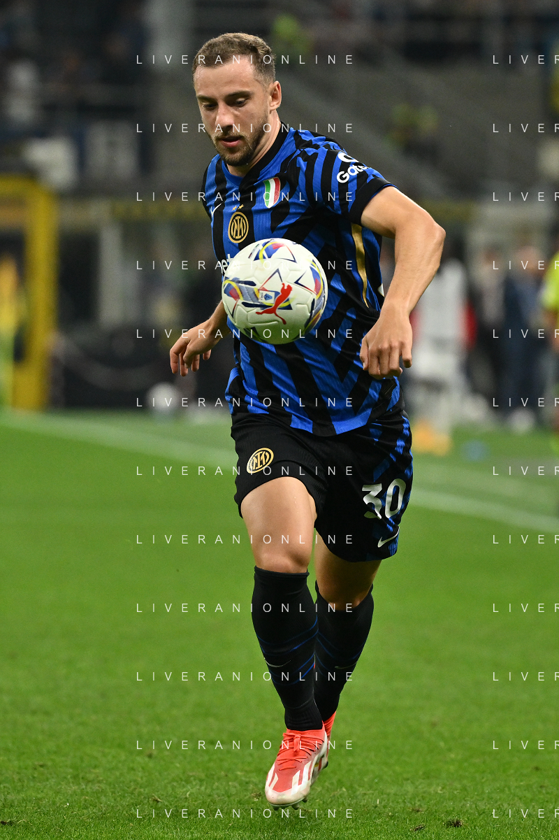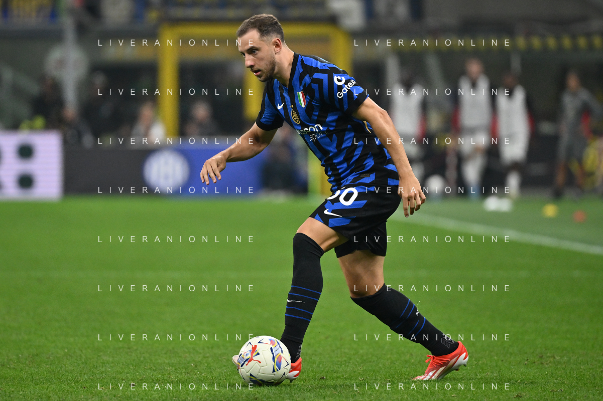Inter vs Milan nella foto Federico Dimarco (Inter) Milano 22-09-2024 Stadio Giuseppe Meazza - San Siro Campionato Serie A Enilive - 5a giornata foto Roberto Garavaglia/Agenzia Aldo Liverani sas/AGENZIA ALDO LIVERANI SAS