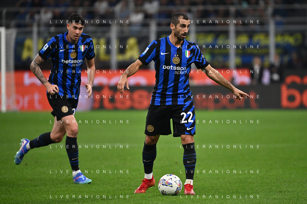 Inter vs Milan nella foto Henrikh Mkhitaryan (Inter) e sulla SX Alessandro Bastoni (Inter) Milano 22-09-2024 Stadio Giuseppe Meazza - San Siro Campionato Serie A Enilive - 5a giornata foto Roberto Garavaglia/Agenzia Aldo Liverani sas/AGENZIA ALDO LIVERANI SAS