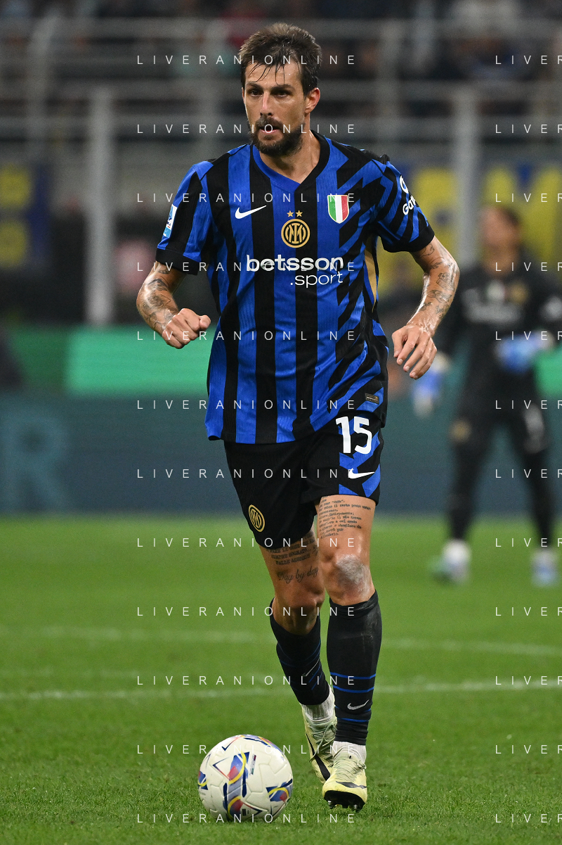 Inter vs Milan nella foto Francesco Acerbi (Inter) Milano 22-09-2024 Stadio Giuseppe Meazza - San Siro Campionato Serie A Enilive - 5a giornata foto Roberto Garavaglia/Agenzia Aldo Liverani sas/AGENZIA ALDO LIVERANI SAS