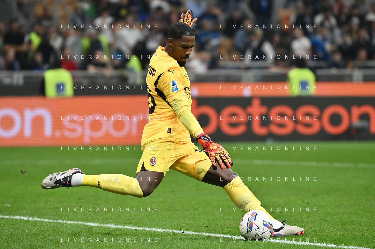 Inter vs Milan nella foto Mike Maignan (Milan) Milano 22-09-2024 Stadio Giuseppe Meazza - San Siro Campionato Serie A Enilive - 5a giornata foto Roberto Garavaglia/Agenzia Aldo Liverani sas/AGENZIA ALDO LIVERANI SAS