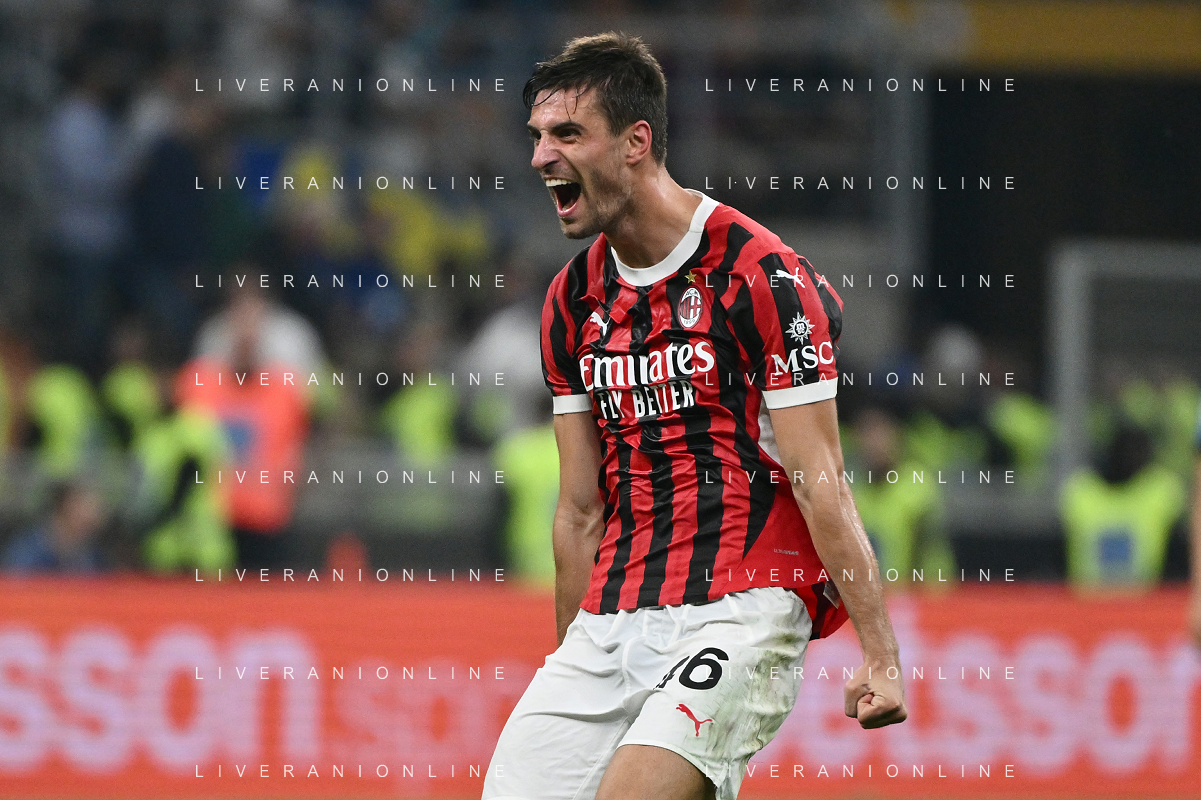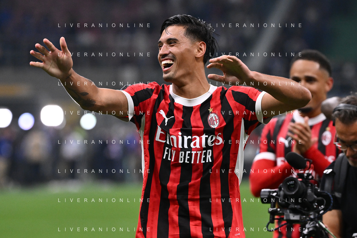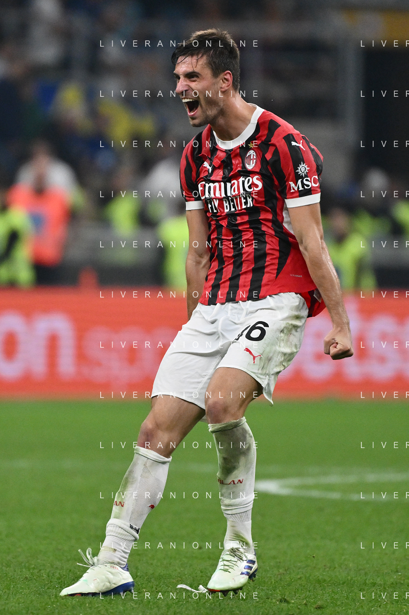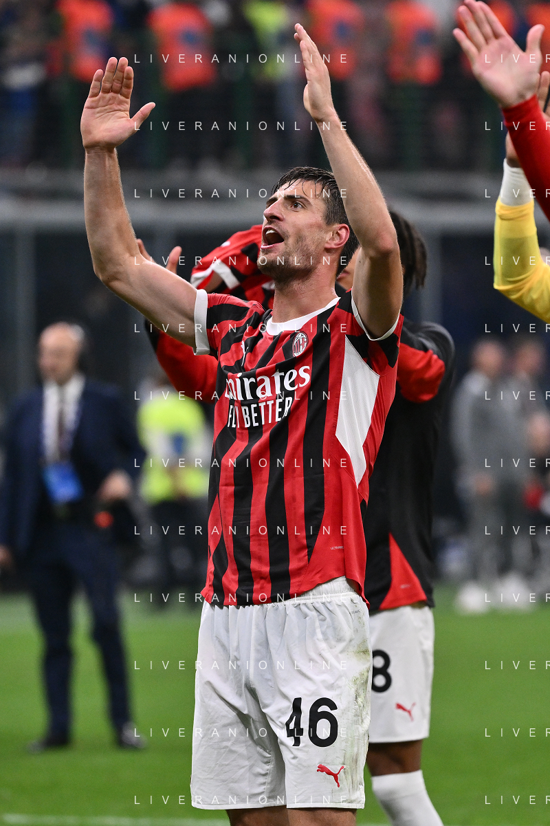 Inter vs Milan nella foto Matteo Gabbia (Milan) esultanza a fine partita Milano 22-09-2024 Stadio Giuseppe Meazza - San Siro Campionato Serie A Enilive - 5a giornata foto Roberto Garavaglia/Agenzia Aldo Liverani sas/AGENZIA ALDO LIVERANI SAS