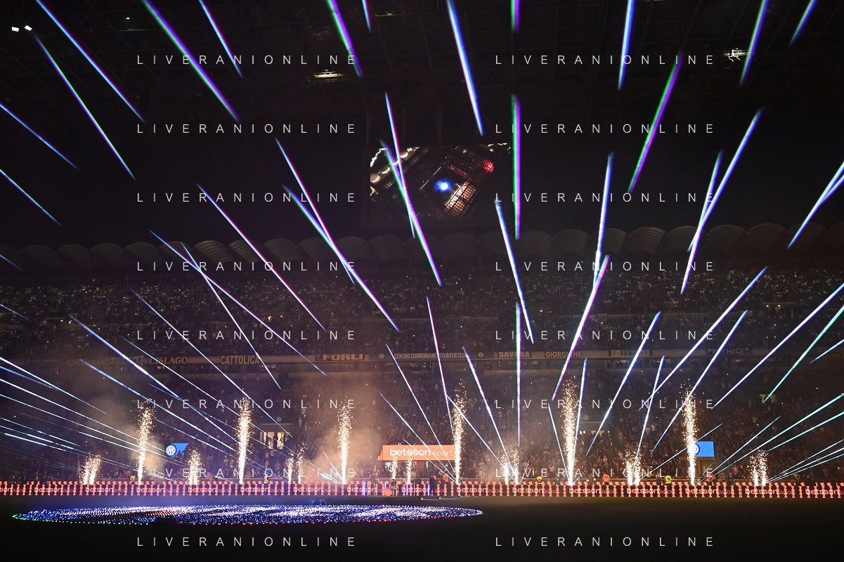 Inter vs Milan nella foto giochi di luce prima della gara Milano 22-09-2024 Stadio Giuseppe Meazza - San Siro Campionato Serie A Enilive - 5a giornata foto Roberto Garavaglia/Agenzia Aldo Liverani sas/AGENZIA ALDO LIVERANI SAS