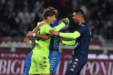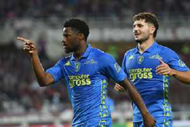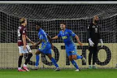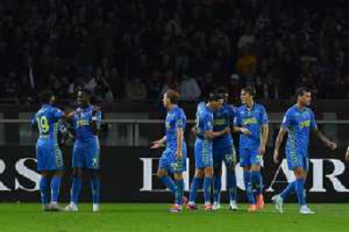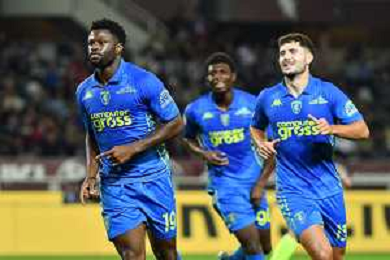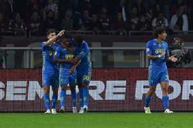 TVMV-Torino 24.09.2024 Stadio Grande Torino Manuela Viganti/Ag. Aldo Liverani sas Torino vs Empoli Coppa Italia Frecciarossa 2024/2025 Sedicesimi Nella foto: esultanza empoli dopo il gol di emmanuel ekong ©Viganti/AGENZIA ALDO LIVERANI SAS