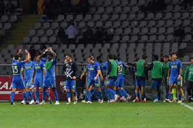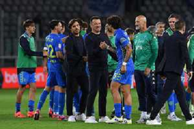 TVMV-Torino 24.09.2024 Stadio Grande Torino Manuela Viganti/Ag. Aldo Liverani sas Torino vs Empoli Coppa Italia Frecciarossa 2024/2025 Sedicesimi Nella foto: festa empoli a fine gara ©Viganti/AGENZIA ALDO LIVERANI SAS